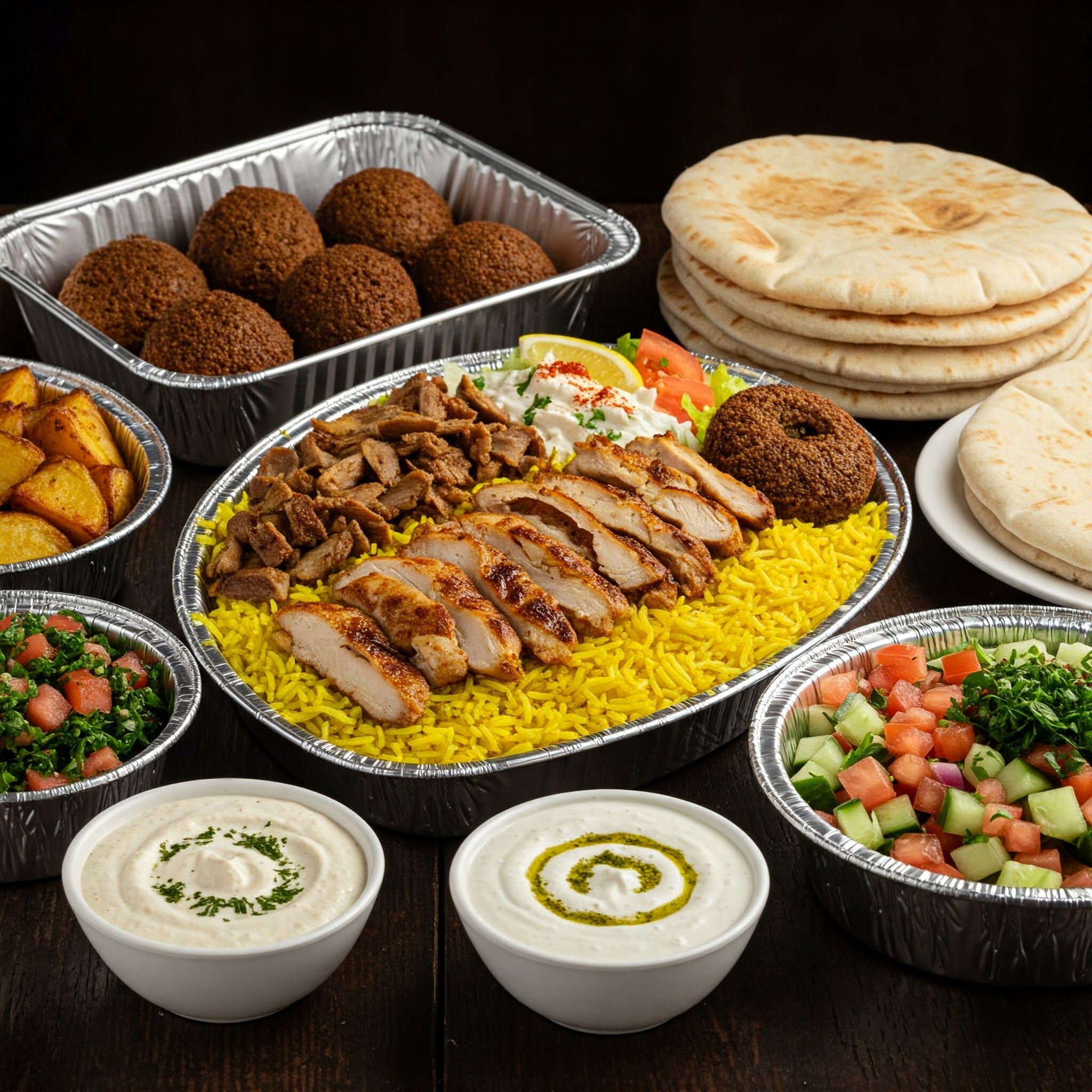 Our shawarma party package offers a feast of flavors! Choose from Chicken, Donair, or crispy Falafel (3 pieces per person)....